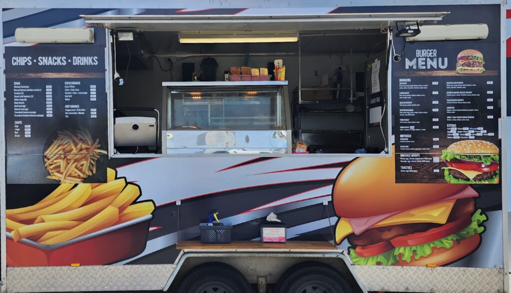 Bookings are available for any occasion or event. Large selection of Beef & Chicken burgers. Breakfast Rolls & Wraps, Chips, Snacks & Drinks